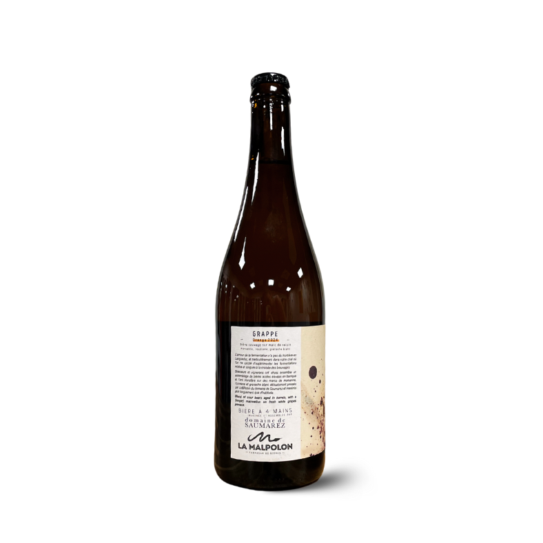 Notre assemblage annuel 2024 de bières acides élevées en barriques avec toujours une macération de marcs ultra frais de Marsanne, Roussane et Grenache Blanc du Domaine de Saumarez.